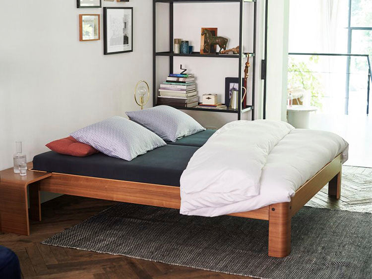 De Auping Auronde is ook verkrijgbaar in een deelbare variant: een compleet 2-persoons bed, waarvan je beide delen heel eenvoudig uit elkaar en naar elkaar toe schuift. Zo wordt het een stuk makkelijker om je bed op te maken en je slaapkamer schoon te houden.